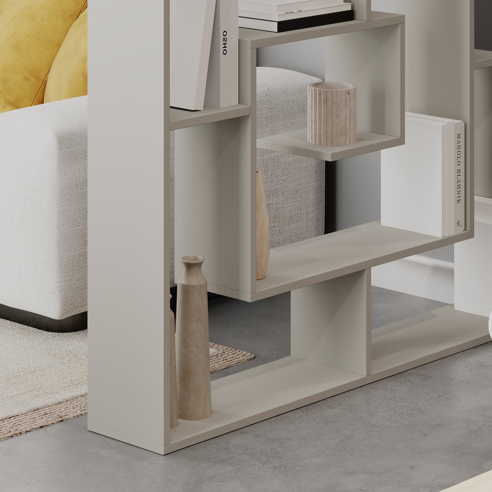 | The geometric design of this bookcase adds a touch of minimalist modern flair to any room, and it is available in a range of colours to suit your existing décor. Six shelf tiers provide plenty of display space for not just books but records, art, electronics, houseplants and more. Assembly is required. |